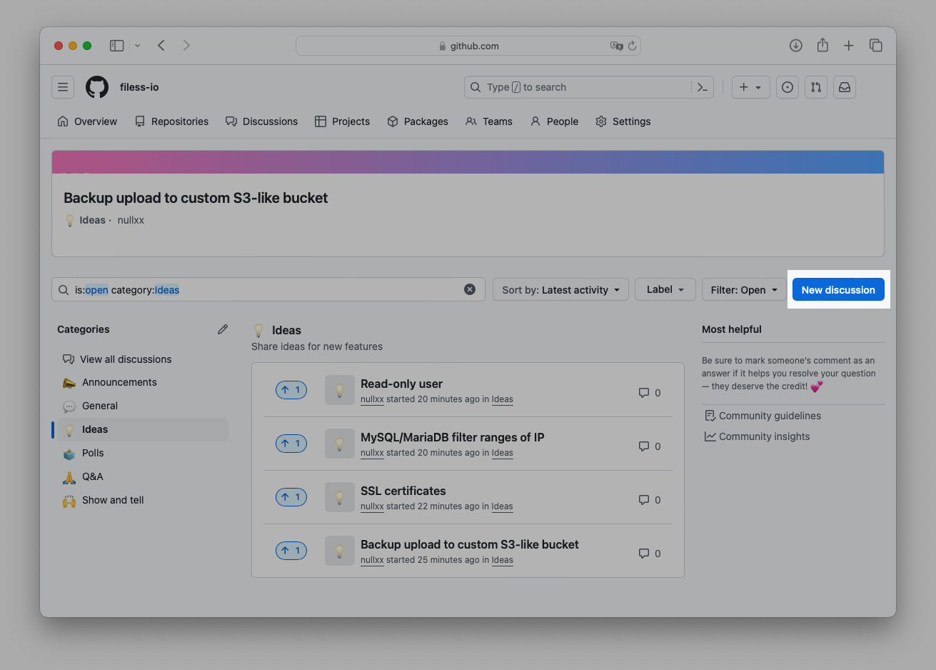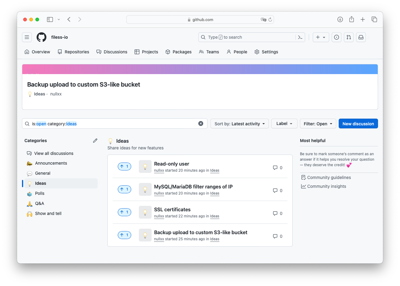 You can leave your idea on GitHub discussions (https://github.com/orgs/filess-io/discussions/categories/ideas).